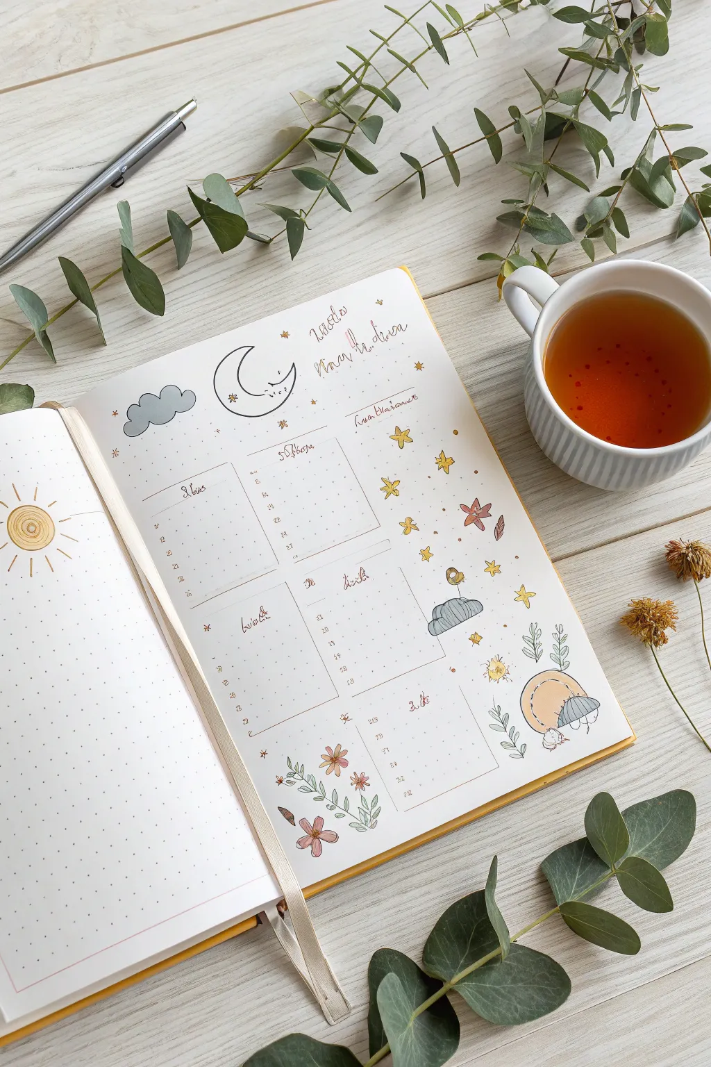 Adorn your pages with sketches and illustrations. Be it delicate balloons or whimsical blooms, these personal touches make each page uniquely yours.