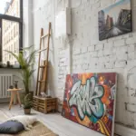 Experiment with both vivid and gray scale designs to ascertain what complements your space best. I think that gray scale pieces can bring about a dramatic atmosphere, while vibrant ones brighten the room.