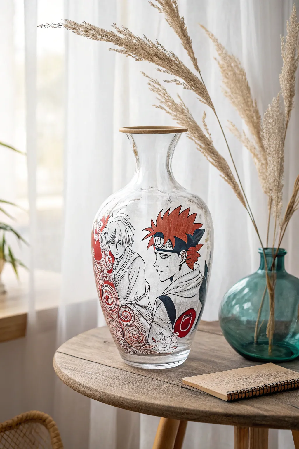 Transform ordinary glass vessels into anime-themed decor pieces. They’re excellent for presenting flowers or as standalone art.