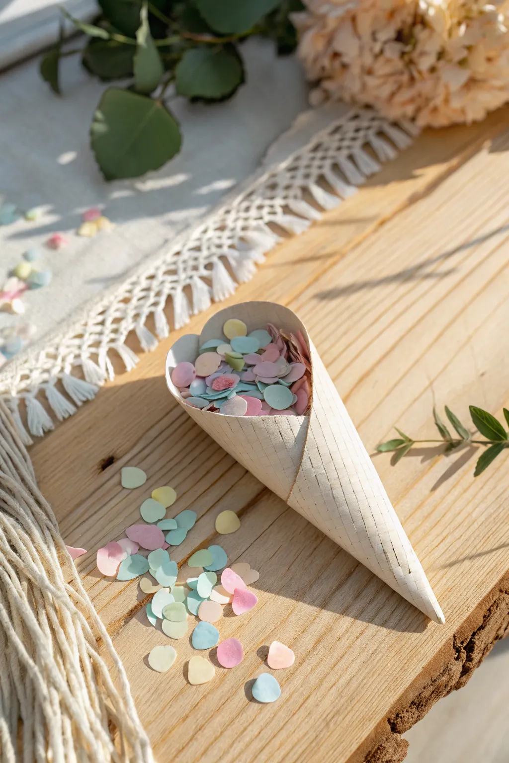 Fashion vibrant confetti cones that can function as both party tokens or embellishments. Each instance we cast them, it’s akin to a miniature festivity in itself.