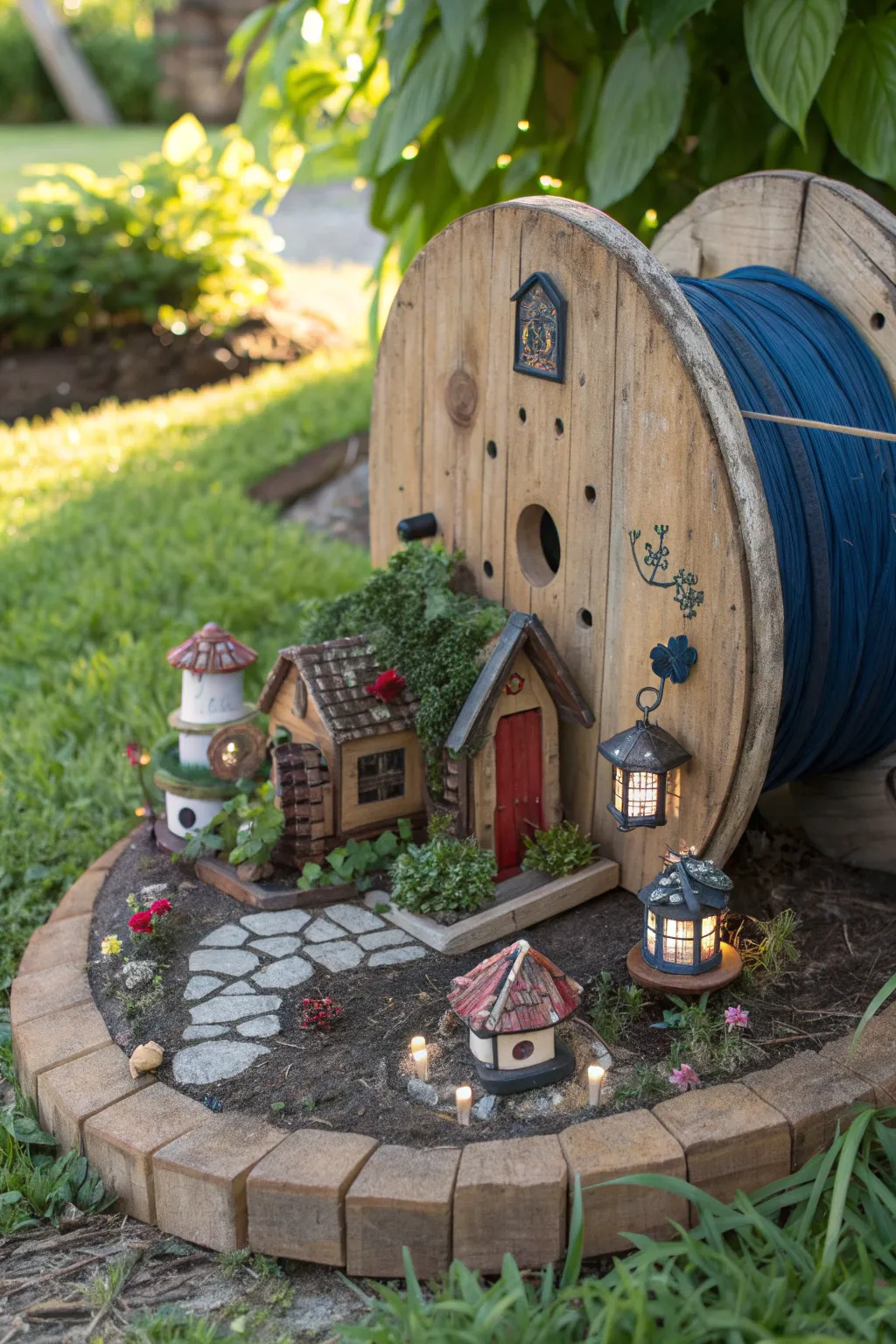 Illuminate your garden by transforming a reel into a light holder. The soft glow at night adds magic to the atmosphere.