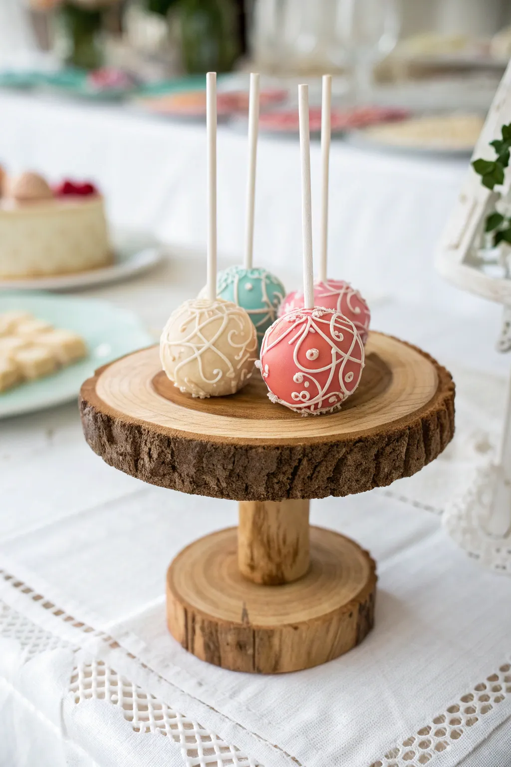 - Timber Heights Cake Pop Display: Exhibit your confectionery delights with a robust timber tiered display, incorporating allure and vertical dimension.