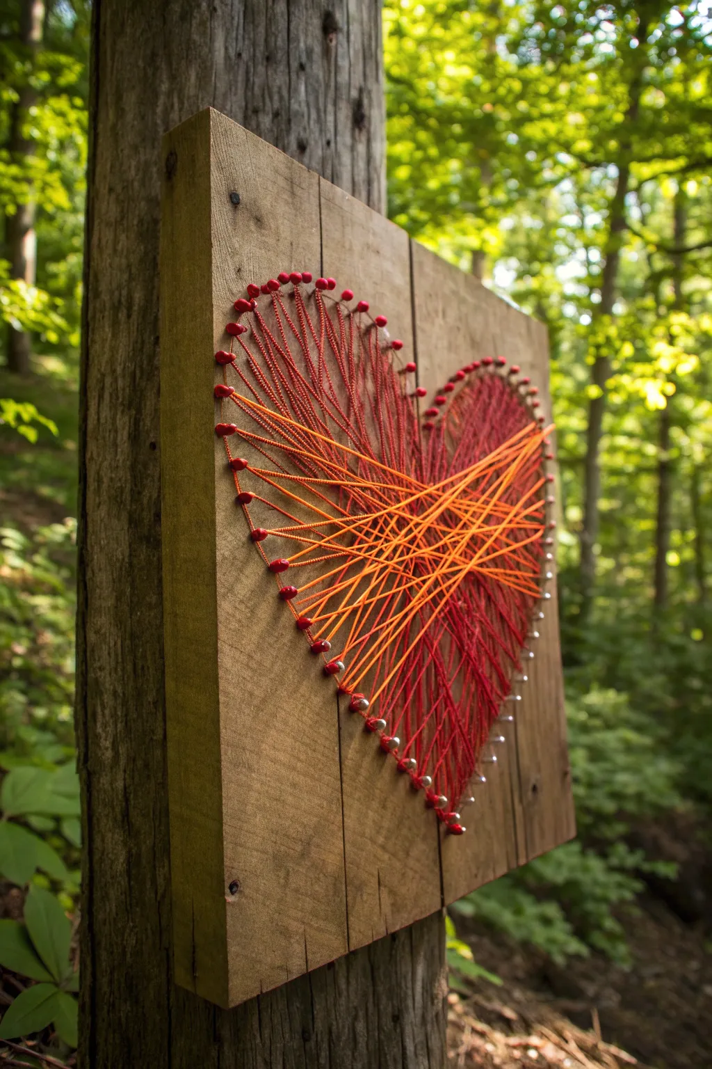 Forge a genial salutation with a twine artistry salutation marker. Using fasteners and vibrant twine, I crafted a heart design that draws all eyes.