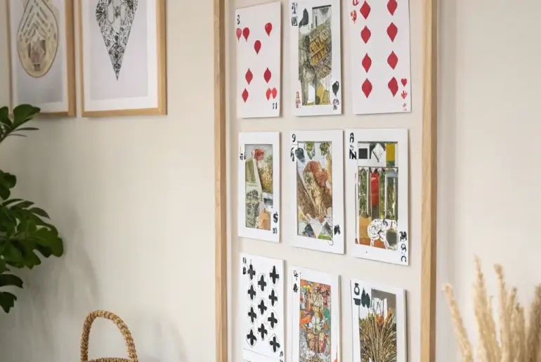Forget about shuffling and dealing! Let’s explore imaginative ways to repurpose playing cards into delightful decorations for your living space. Interior Partitions Redesign your area with a fanciful playing card curtain—a daring and artistic proclamation for your minimalist refuge. Join cards to compose an attention-grabbing curtain or space divider. It embodies a daring declaration piece, invariably impressing visitors. Try these: Soft Twinkle Lights: Illuminate your card curtain with discreet lighting for an alluring nocturnal radiance…