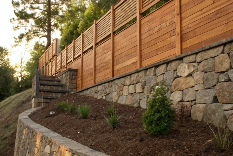 When confronted with a sloping garden, the idea of installing a horizontal fence that marries aesthetic appeal with practical functionality might seem daunting. However, armed with the appropriate concepts, you have the opportunity to fashion an enchanting outdoor retreat that harmonizes effortlessly with the inherent undulations of the terrain. Horizontal Fence with Untreated Surface Enhance your garden with the timeless sophistication of a natural finish horizontal fence. An unvarnished wood surface underscores the innate splendor…