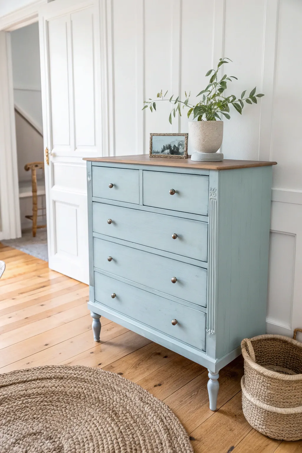 • Light Blue Specialty Paint: Easily renew your dresser with light blue specialty paint for an updated, modern appearance.