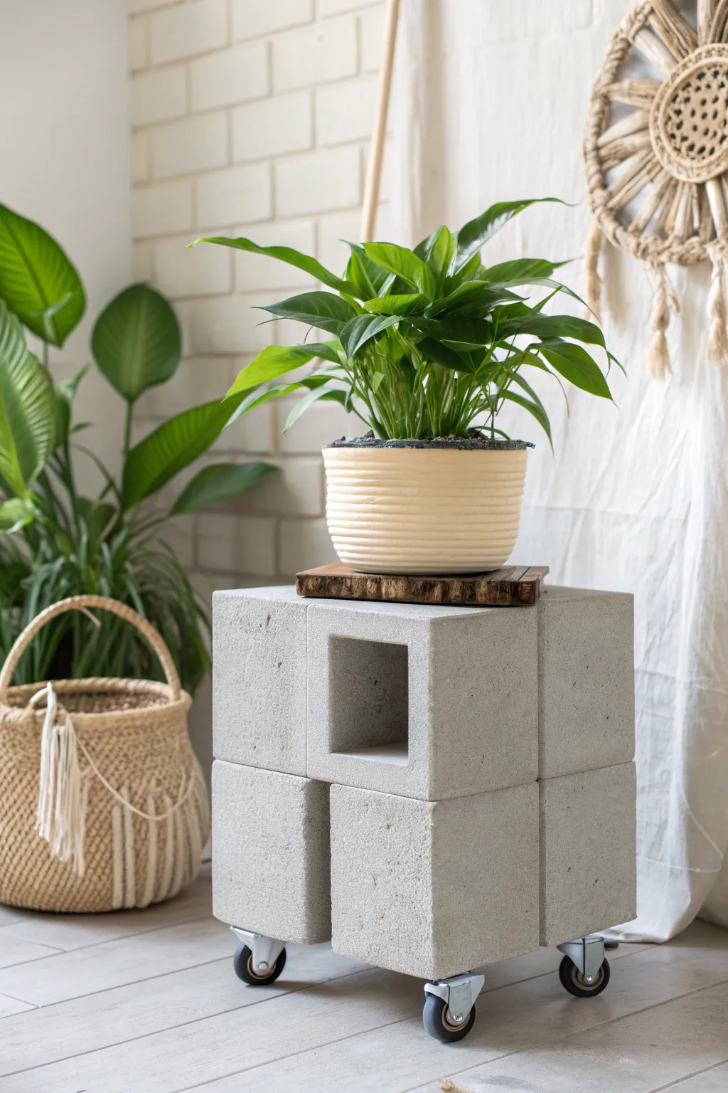 For a movable plant display, attach wheels to the base of your cinder block stand. It’s a game-changer when you need to rearrange your space or chase the sun.