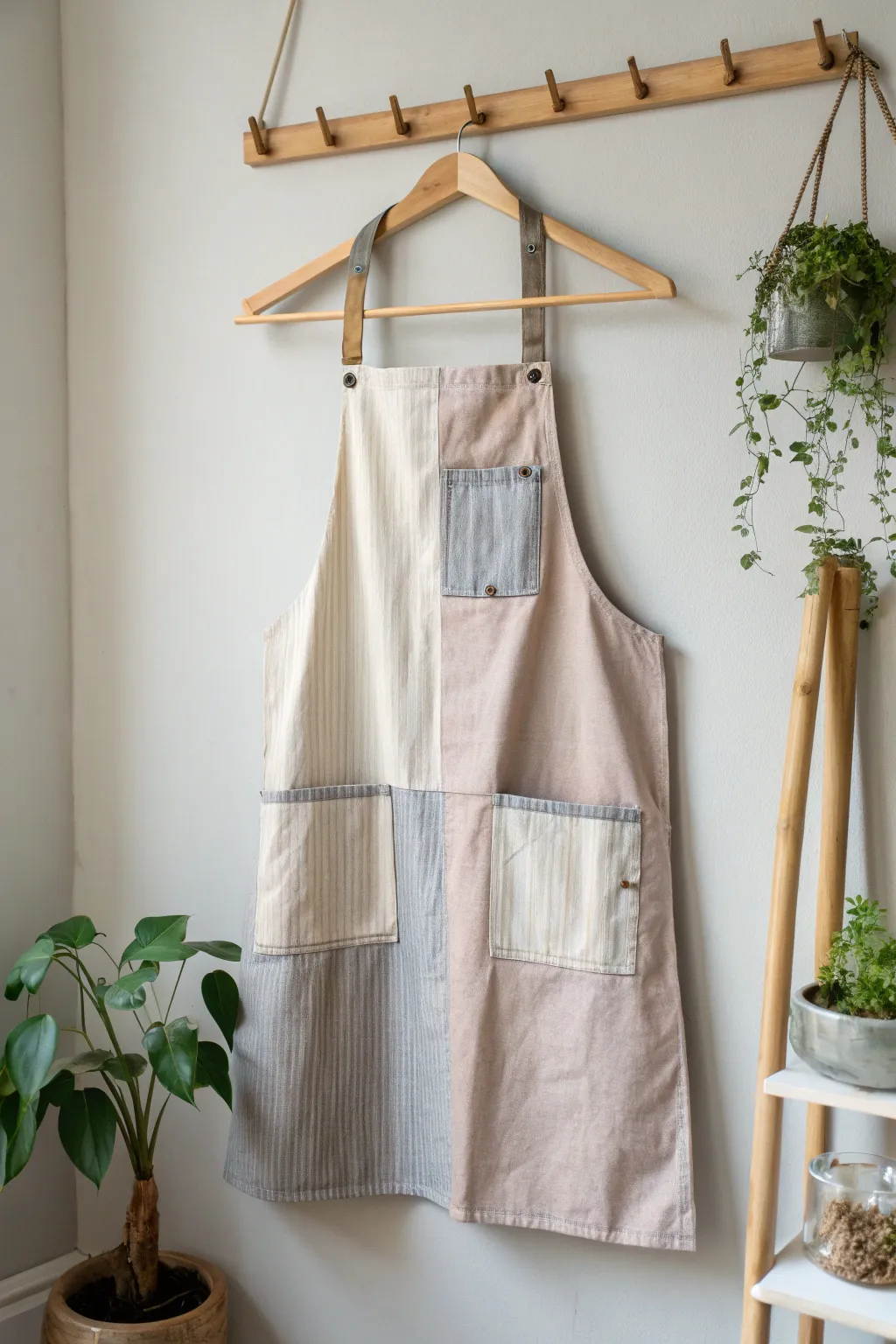 Metamorphose men’s shirts into charming overgarments. I adore employing the sleeves as playful pockets—culinary endeavors have never been so stylish!