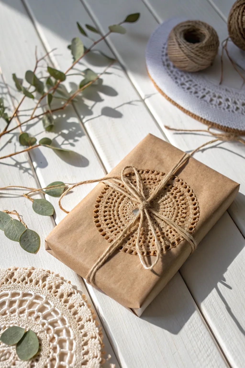 Envelop your crochet items in earth-toned paperboard to evoke a naturally homespun atmosphere. It’s akin to draping your offering in a snug, comforting layer!