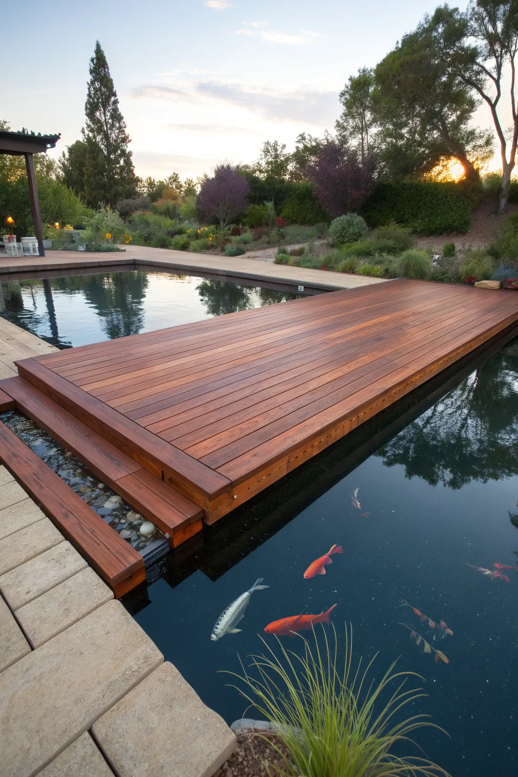 Picture a drifting deck floating above your pond, enabling you to be encircled by koi as you enjoy your morning tea. It’s akin to possessing your personal island!