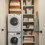 Opting for salvaged lumber for an over-the-toilet unit introduces both distinction and ecological consciousness to your decor. I’ve utilized aged barn planks to conjure a countryside-meets-contemporary vibe that is both handy and kind to the planet.