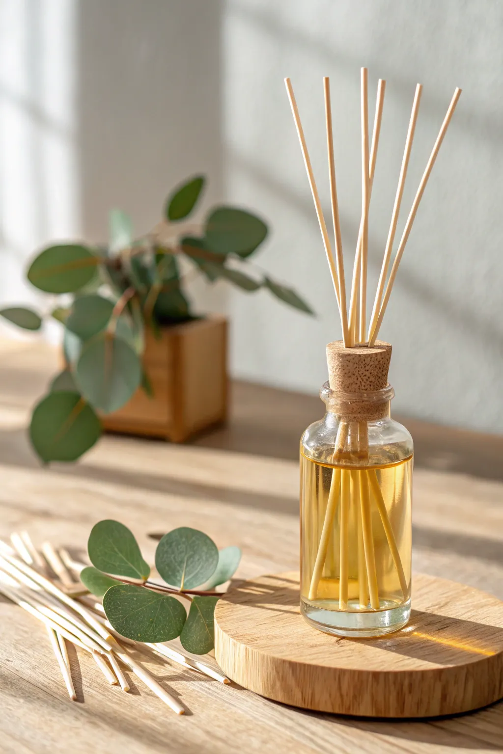 Introduce your favored concentrated aroma essence into a small receptacle, append a few porous reeds, and presto—an effortless self-made diffuser! I regularly prepare these to maintain a revitalizing atmosphere in my operational space.