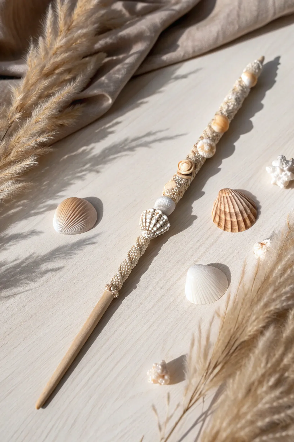 To engender a coastal ambiance, affix diminutive marine shells. I once employed shells procured during a seaside excursion, and the wand invariably serves as a reminder of the ocean’s enchantment.