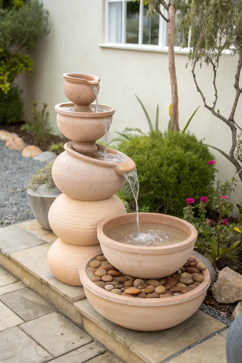 - Terra Cotta Vessels Collection: Delve into a spectrum of sizes to craft your captivating garden fountain showcasing cascading terra cotta vessels.