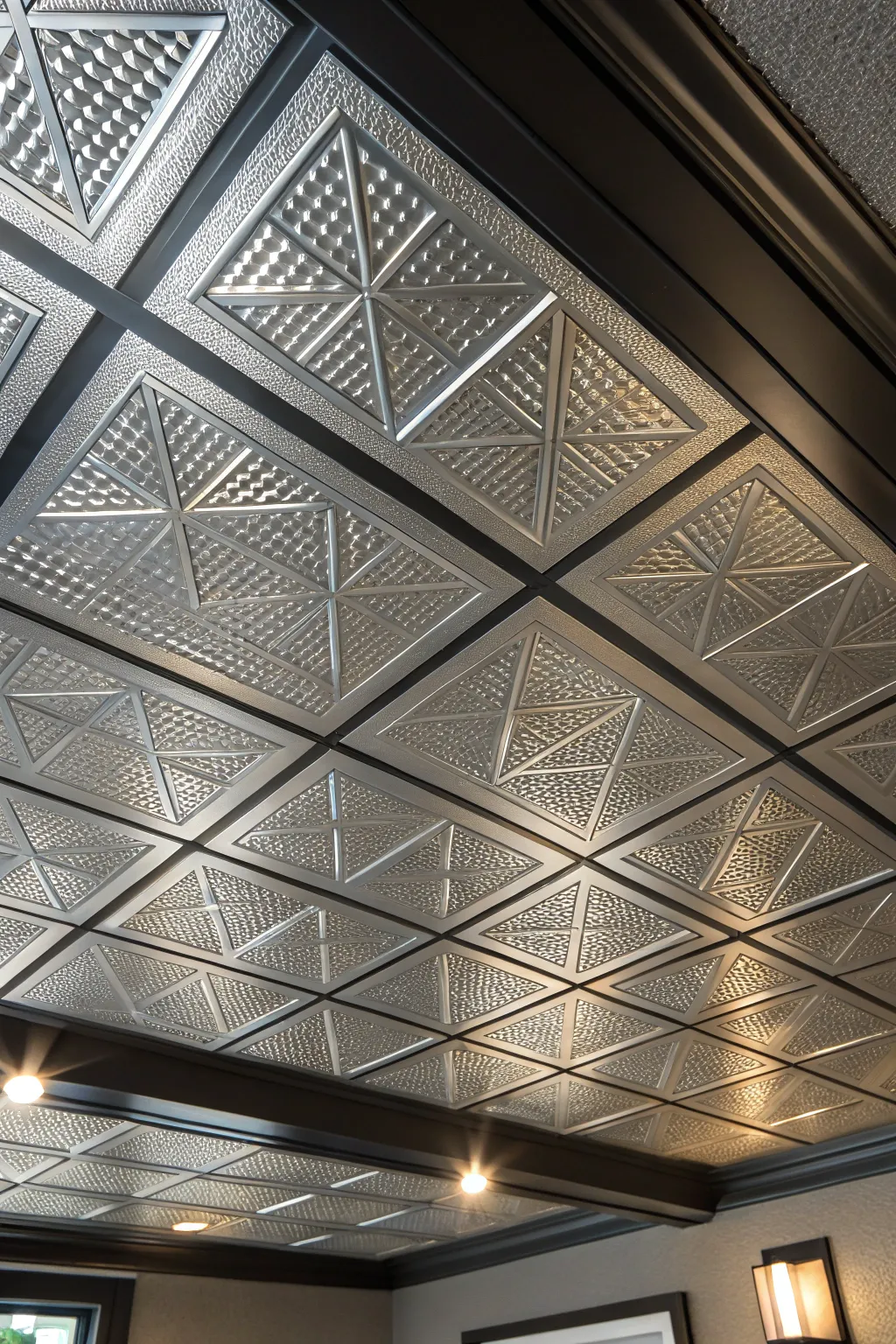 - Ornamental Metal Ceiling Squares: Enhance your room with these ornamental metal ceiling squares, easy to affix and designed to reflect light beautifully.