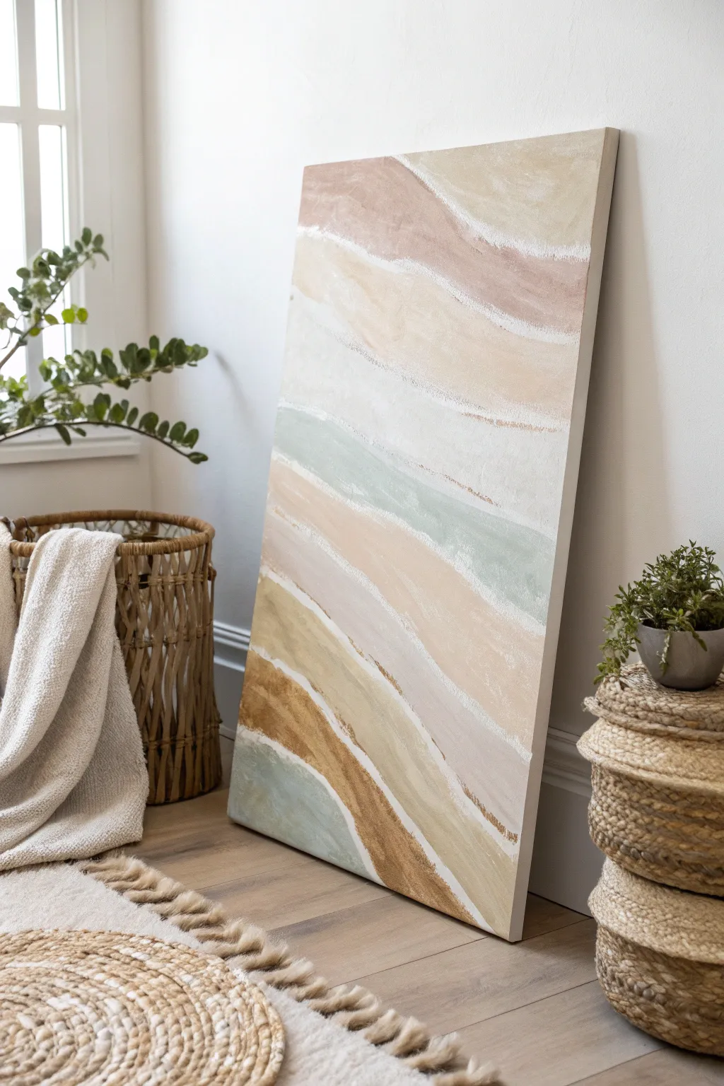 Uncover the splendor of strata canvas artistry with dry brushing techniques—impeccable for conceiving dimension and profundity in your minimalist decor.