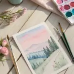 Craft a watercolor flora scene, simple yet elegantly capturing nature’s beauty. This is a project I often undertake with friends over coffee, appreciating the soothing process.
