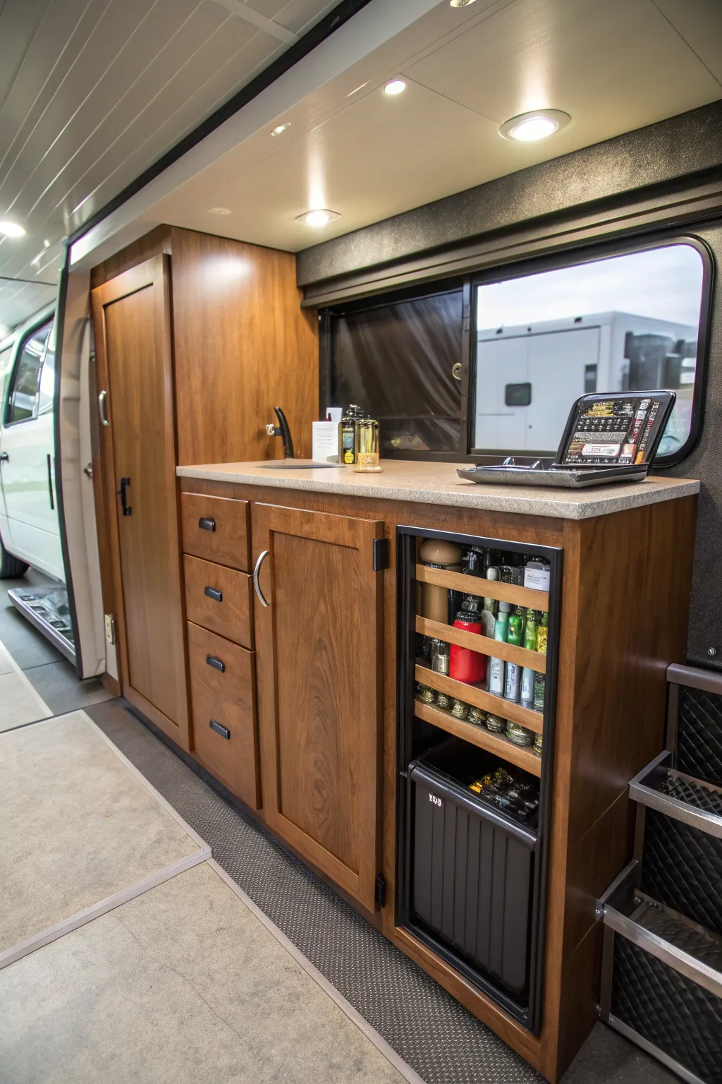 Enhance your trailer’s style using eco-friendly bamboo cabinets that combine sustainability with modern design.