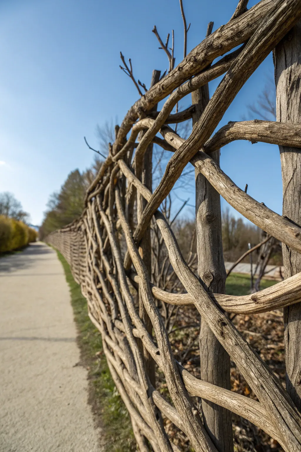 Employing fallen branches to fashion a rustic fence infuses a bespoke nuance and aids in the recycling of natural constituents. It’s a favored methodology of mine when I’m feeling particularly inventive.