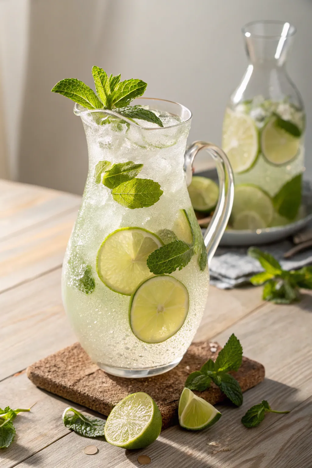 This simple drink combines a splash of club soda with tangy limeade. With a bit of summer touch, the flavor and aroma of the mint garnish is just right.