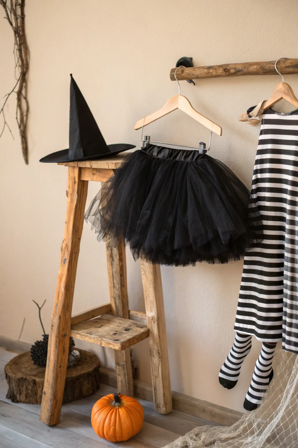Step into the role of a classic witch with a playful twist by styling a black tutu alongside a pointed hat and striped stockings. I recall once using a touch of green face paint for an enchanting appearance that felt both timeless and delightful!