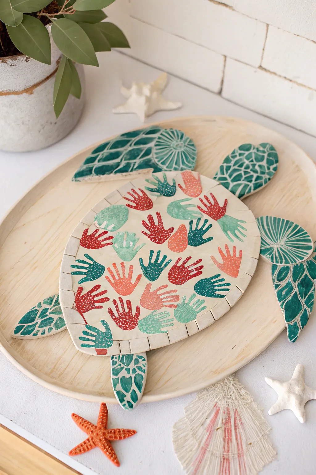 Explore the aquatic realm by converting handprints into vibrant sea life such as fish and turtles. My most recent sea turtle creation is now a favorite among those who frequent my workshop.
