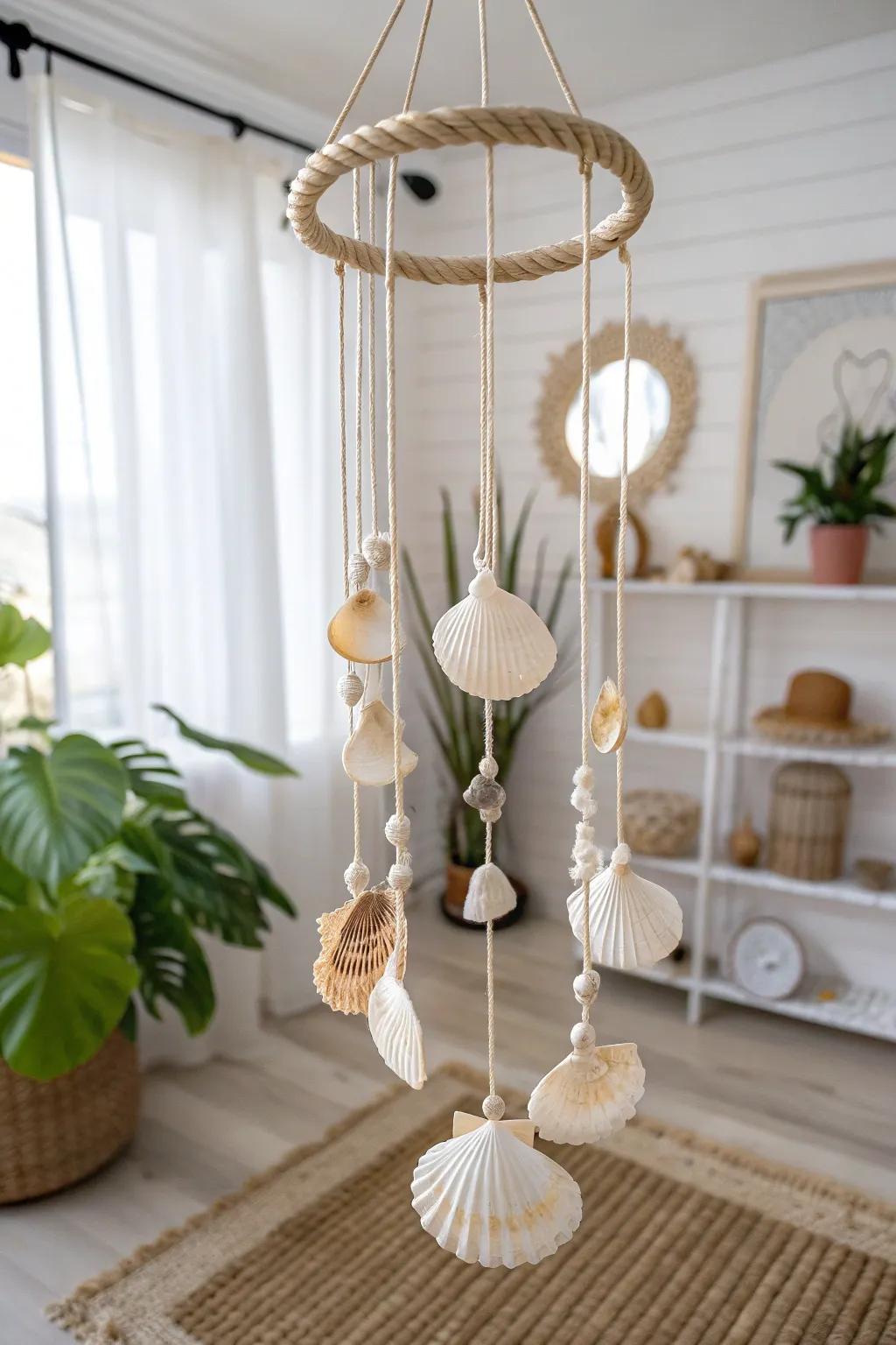 Concoct a suspended statue with shells to suspend within a nursery or sun parlor for a gentle, soothing allure. I reveled in fashioning one with my niece, and it presently serves as the centerpiece of her chamber.