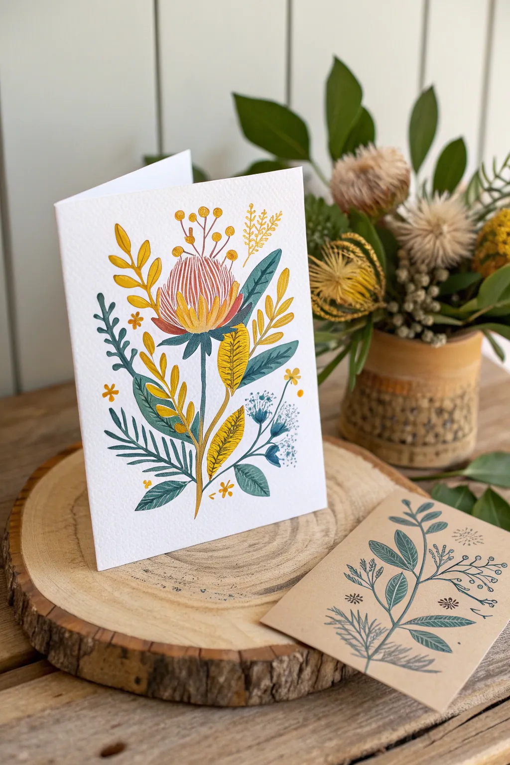 Draw inspiration from the seasons to craft a card that echoes the time of year. Whether it’s vernal blossoms or autumnal foliage, there’s always something exquisite to accentuate.