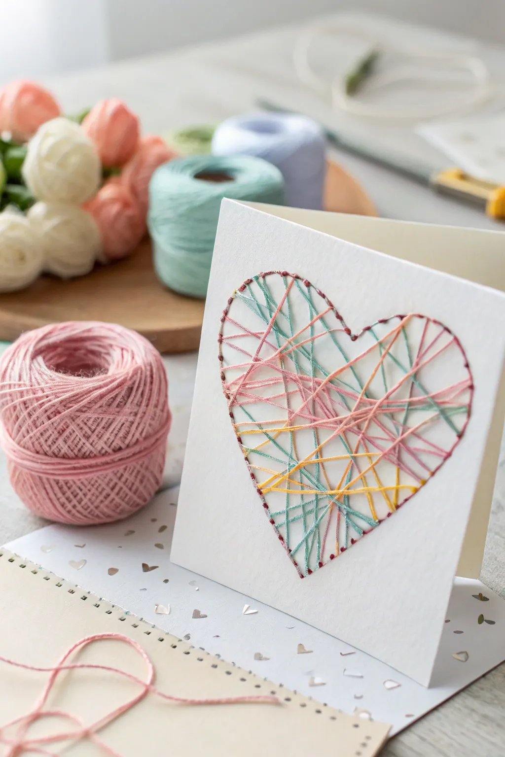 Draw a heart or other shape on your card and fill it with vibrant yarn. It’s a wonderful way to weave love into every word.