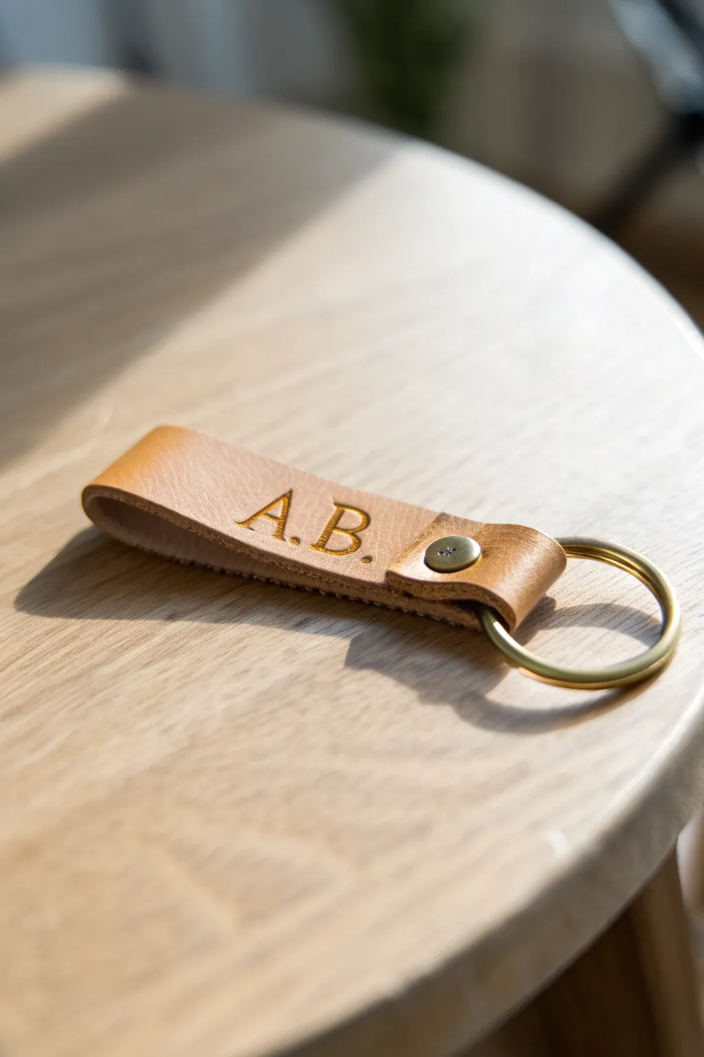 Express a personal sentiment with a handcrafted hide keyring, perfect for his everyday essentials.