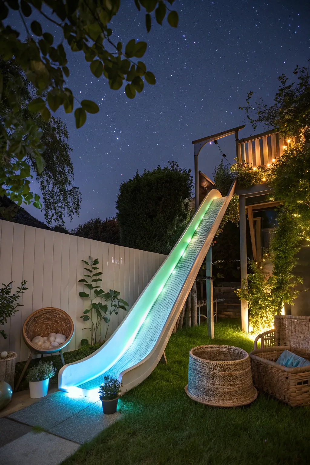 For a nighttime variant, utilize radiant sticks or LED lights along the slide. It transforms your backyard into a glowing paradise and is assured to impress!