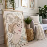 Add personality with recovered wood borders that bring a hint of the outdoors inside. I cherish the way each border tells its own tale, matching the distinct mood of my art.