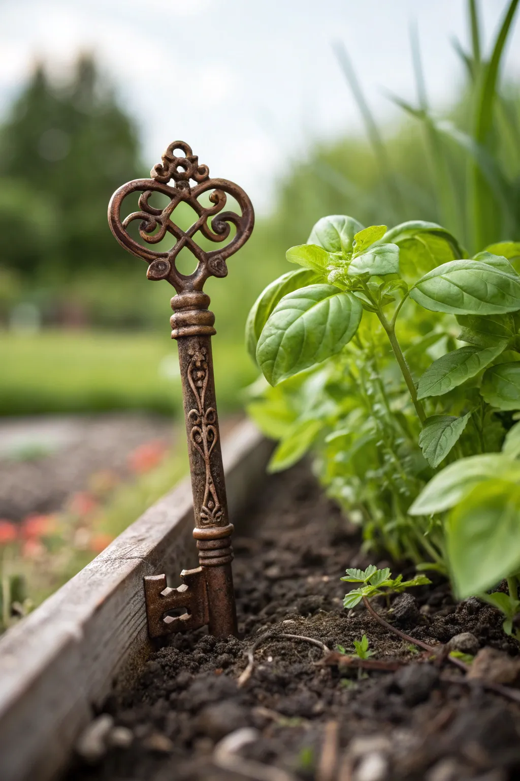Lend your garden a personal flourish by utilizing keys as personalized plant identifiers. Each key denotes a specific plant, and I’m captivated by the quaint charm they bestow upon my vegetable garden.