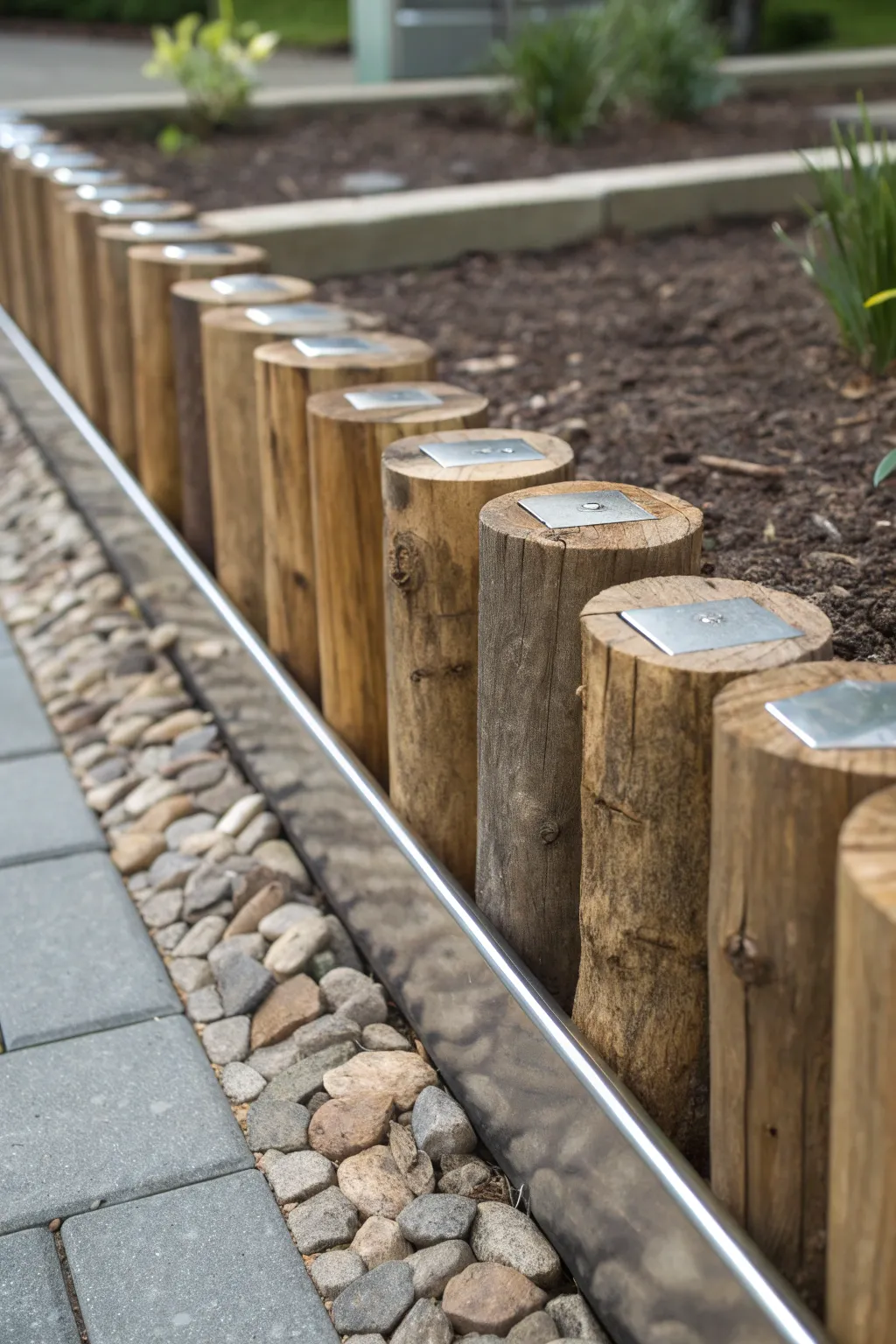 Pair timbers with mulch or decorative stones for a polished, completed presentation. This arrangement not only presents admirably but also contributes toward weed management, which emerges as an actual asset.