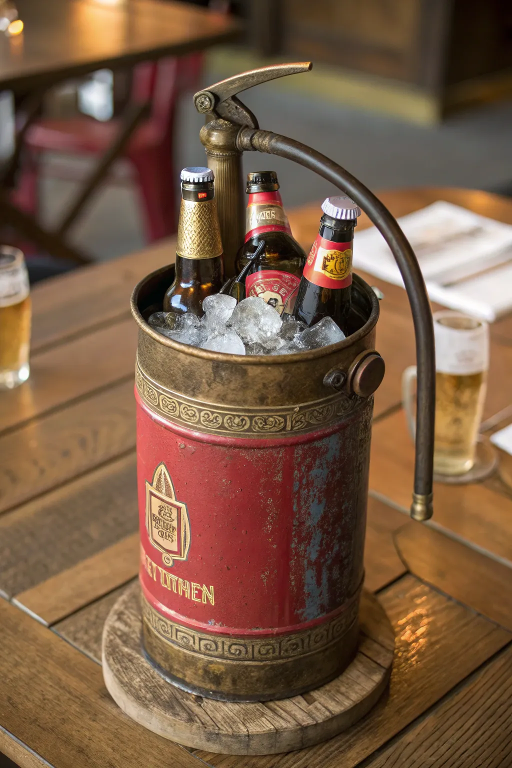 Pack an old extinguisher with ice to use as a portable beverage chiller at your next party. It provides a quirky and useful surprise for your gatherings.