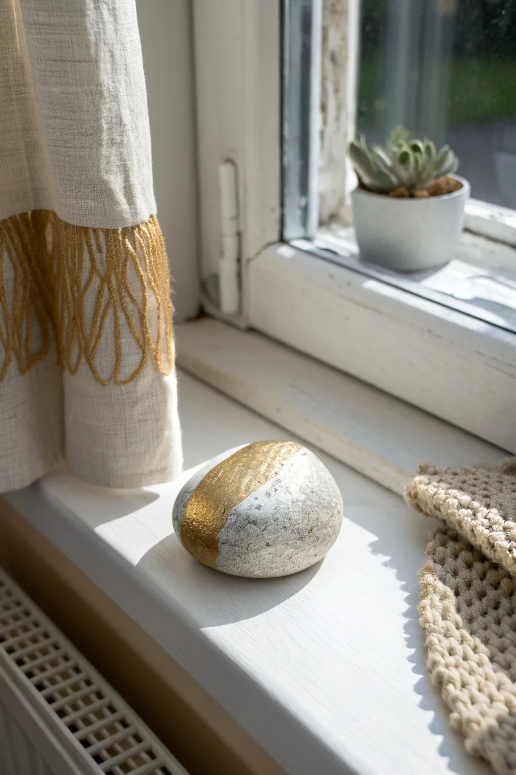 Depict the gleam of sunlight upon glimmering arenas utilizing metallic paints. It introduces a dash of glamour and is remarkably facile to execute. I’ve positioned glimmering arena stones in my window recesses, and they reflect illumination exquisitely.