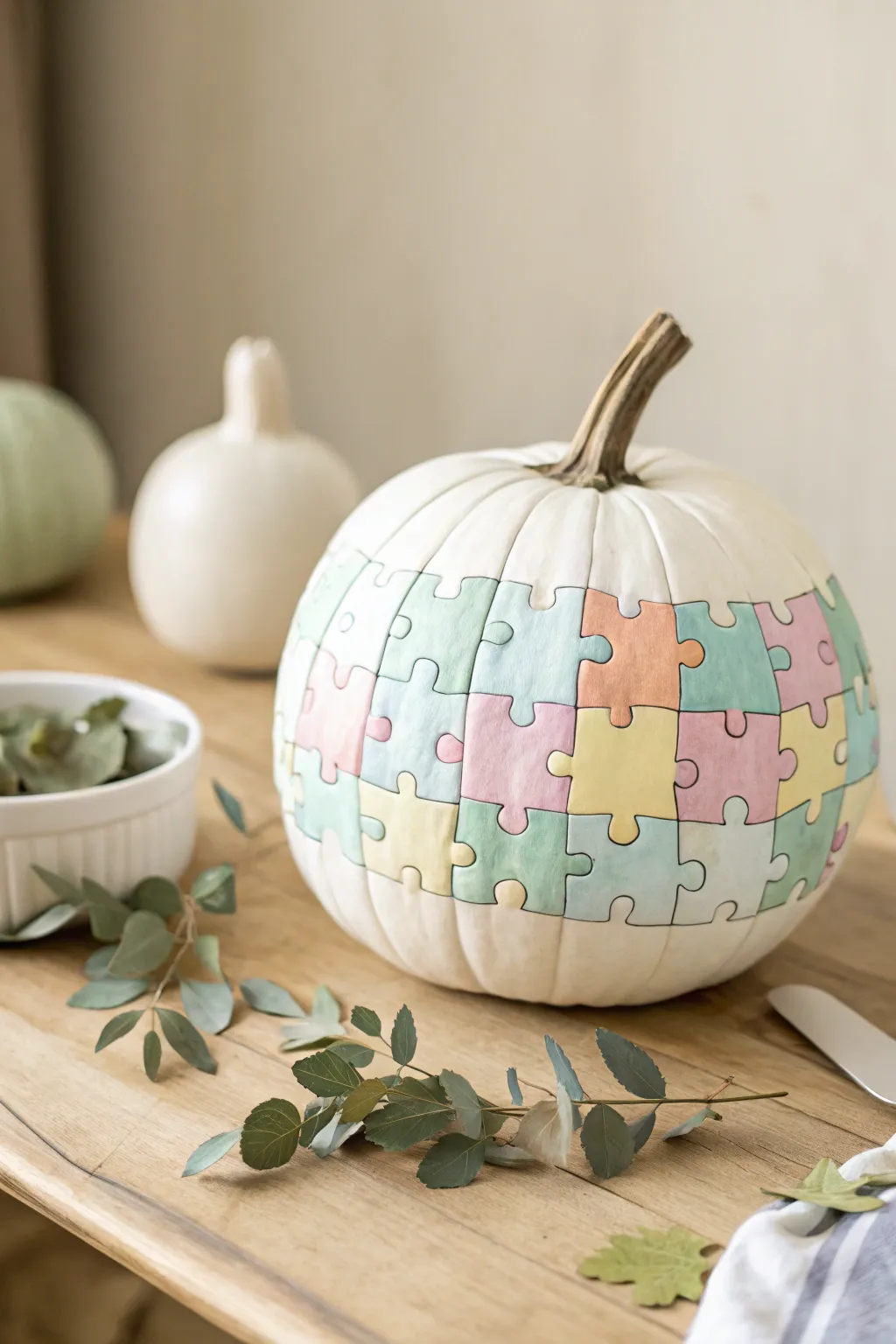 - Craft Acrylic Palette: Unleash creativity with vibrant colors to craft your unique puzzle piece pumpkin masterpiece.