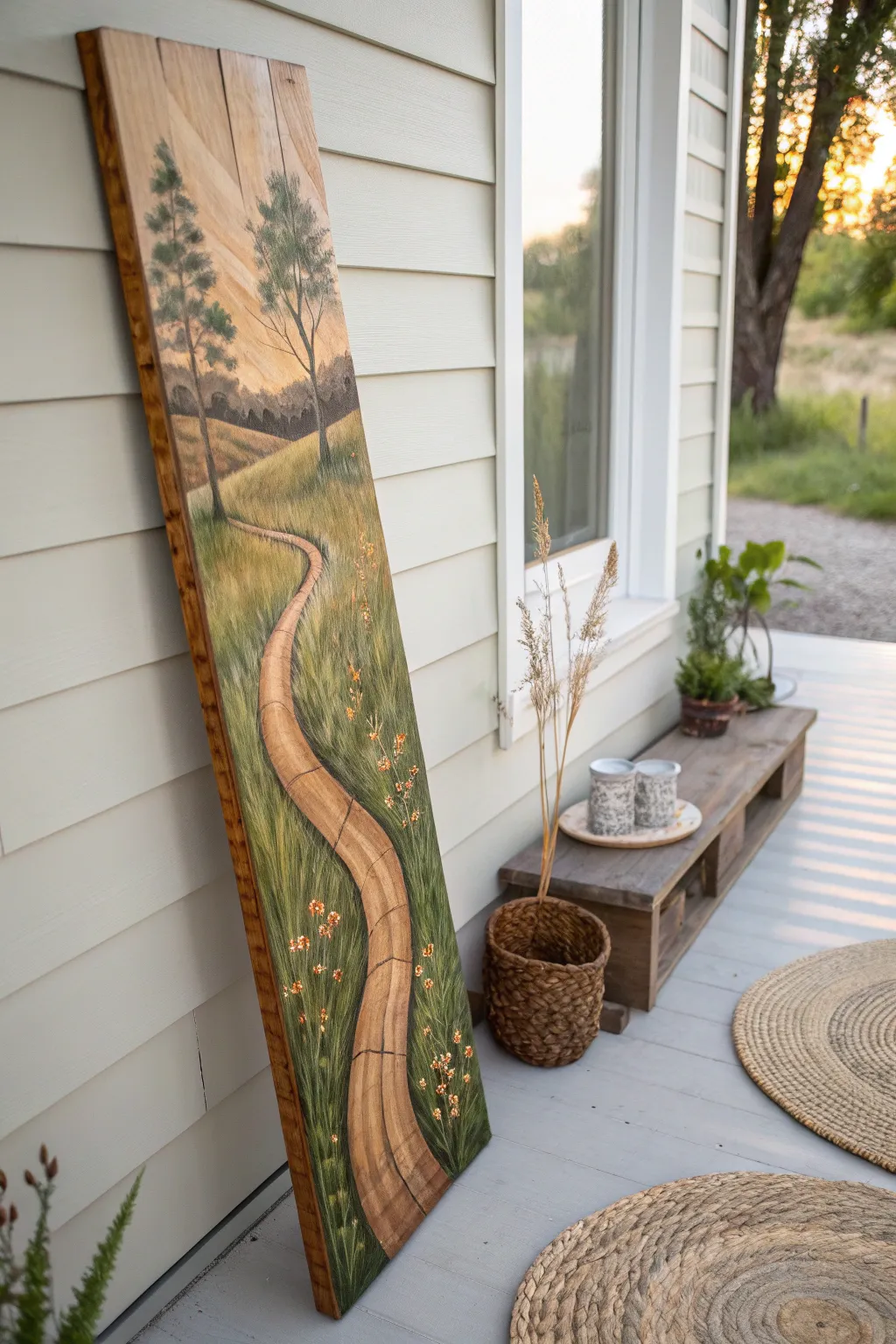 Explore the splendor of natural thoroughfares, such as a winding trail through a meadow. I depicted one on my veranda, beckoning you to step directly into the scene.