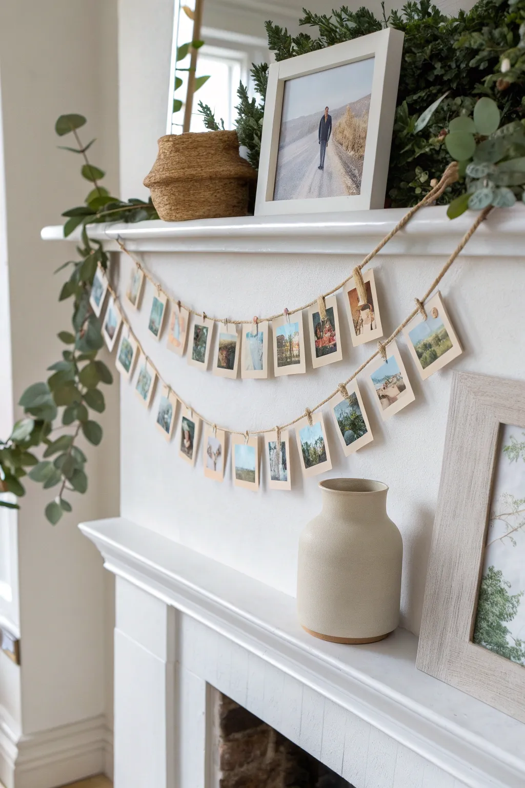 Transform your pictures into a pennant for a playful and charming décor element. I draped mine across the mantel, and it never fails to draw attention.
