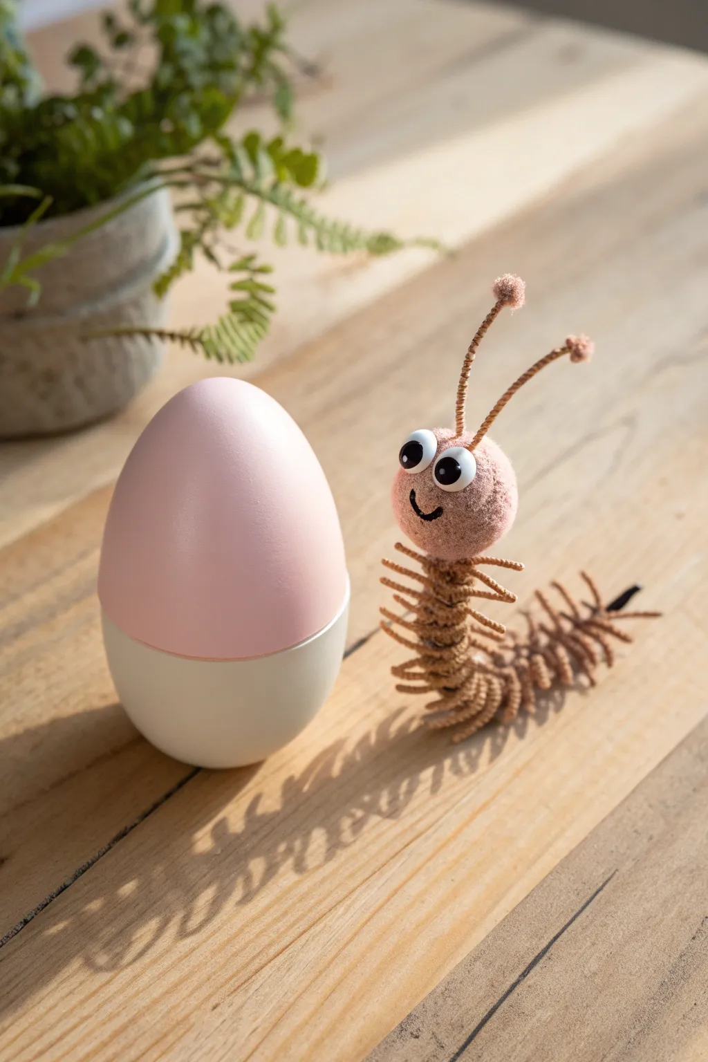Artisanal Charm: Convert polymer egg halves into endearing caterpillar companions.