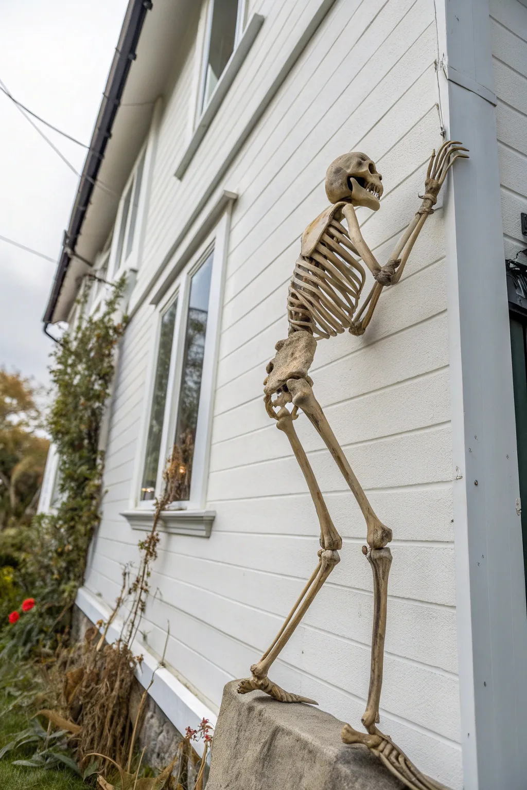 Display a spectral figure ascending a house facade to startle visitors with its adventurous spirit. It’s a thrilling way to add some excitement to your exterior decor. Using some hooks, I managed to create a climber that impressed everyone who visited.