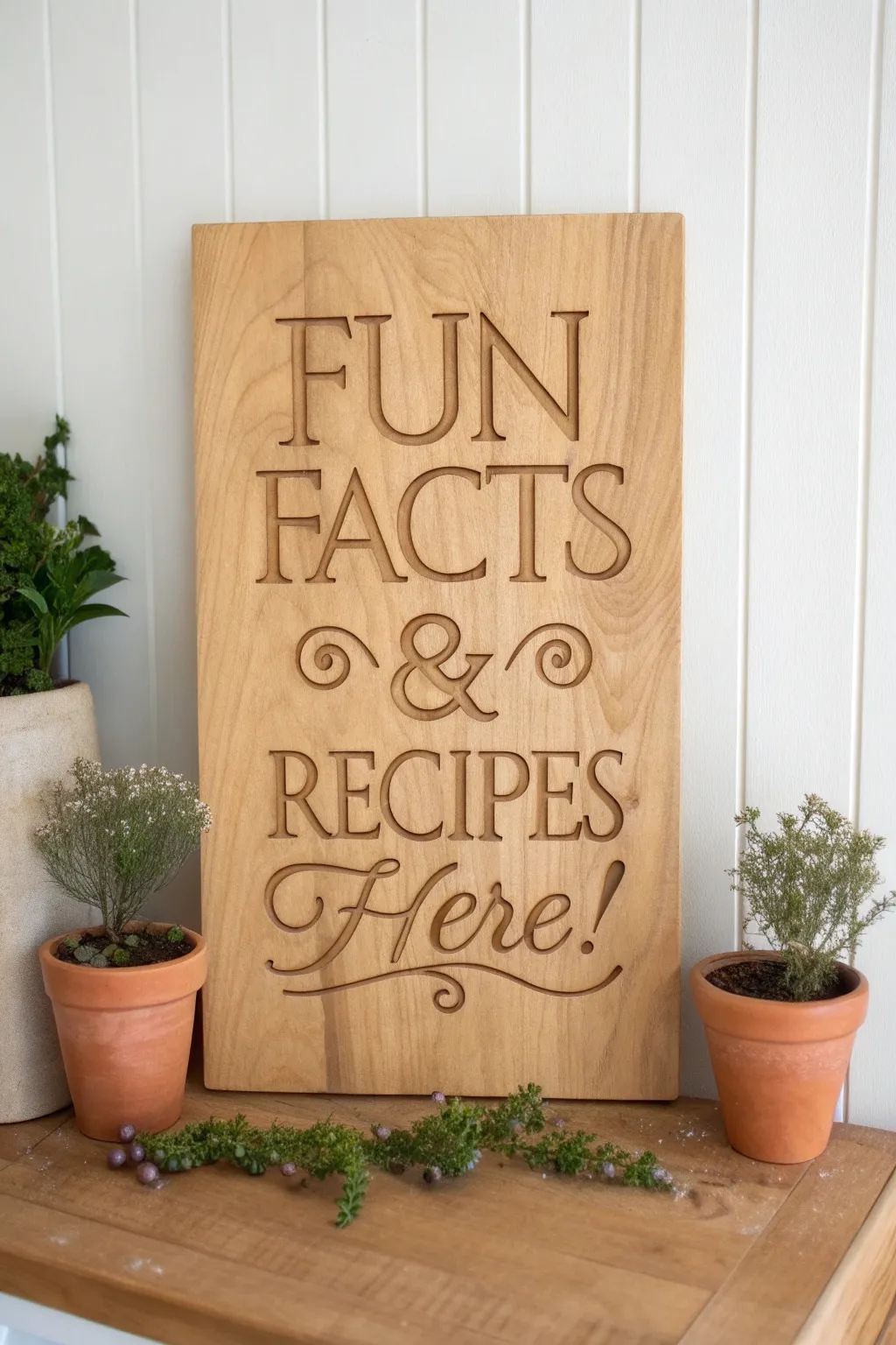 - Wood Kitchen Ornament Sign: Imbue charm with a wood sign showcasing rotating recipes and interesting facts.