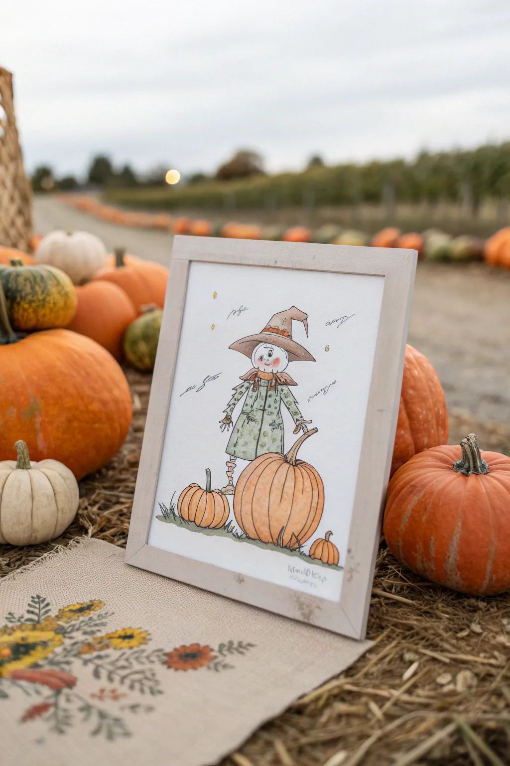 Position a friendly rustic watchman amid your pumpkins, introducing a dash of whimsy and custom to the expanse. I find rustic watchmen infuse a playful character into any fall drawing.