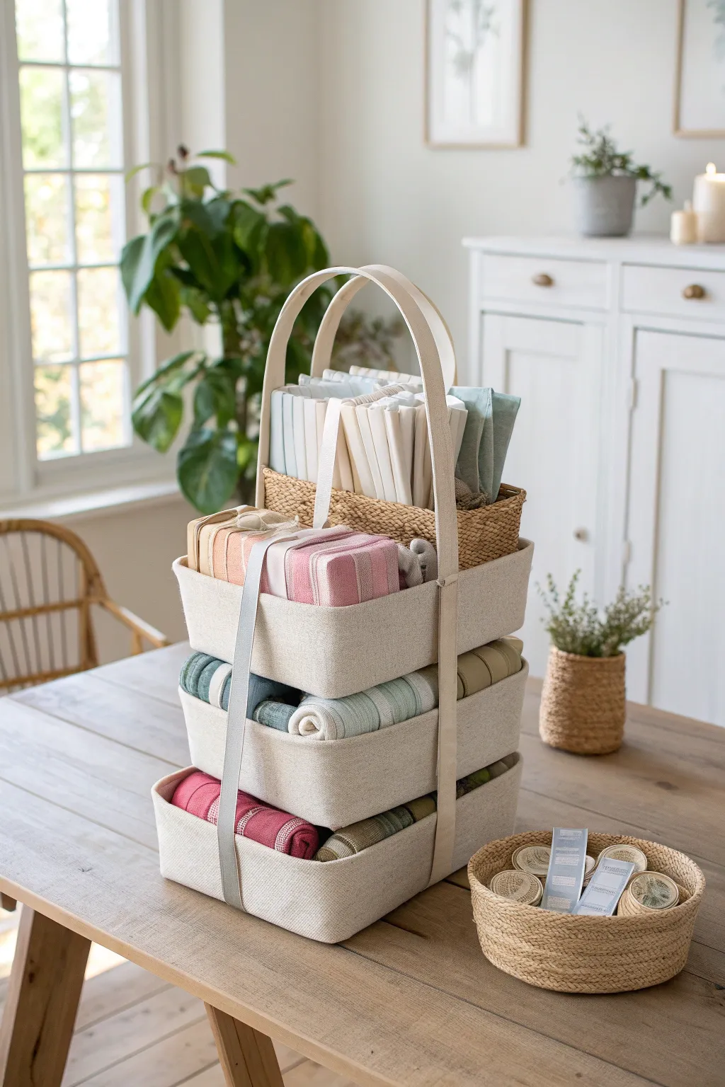• Tiered Artisan Stowage Tote: Arrange your artisan essentials utilizing this convenient tiered stowage tote, perfect for ribbons.