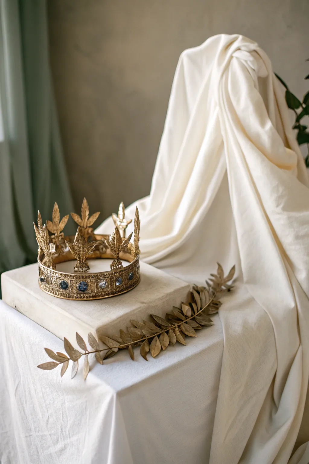 - Gilded Foliage Crown: Bring a regal touch with this gorgeous gilded foliage crown, ideal for embodying Roman royalty.