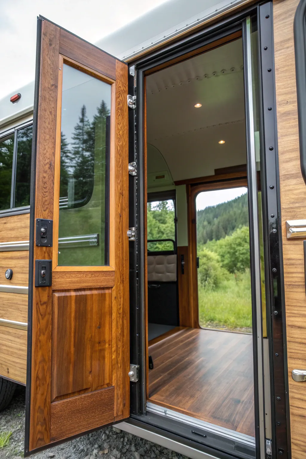 - Resilient Entrance Pivots for Split Entrances: Install premium pivots for effortless function and robustness in your skoolie’s split entrance.