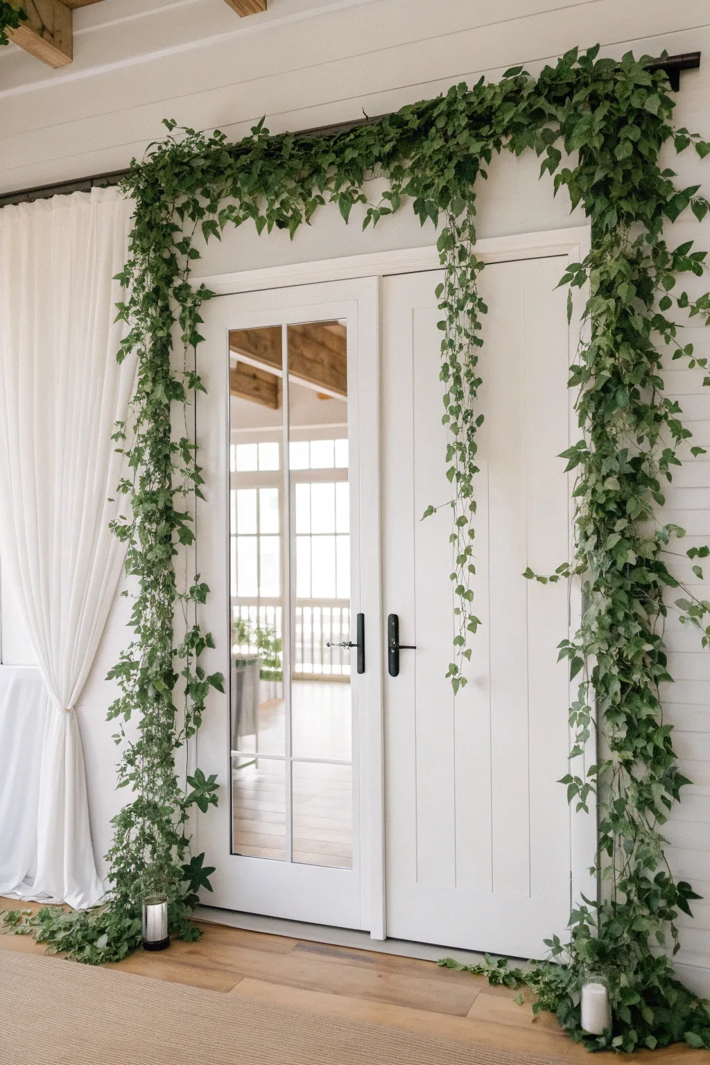 - Hanging Vine Plant Garland: Enhance your sliding door with a verdant vine garland, establishing a consistent indoor-outdoor connection.