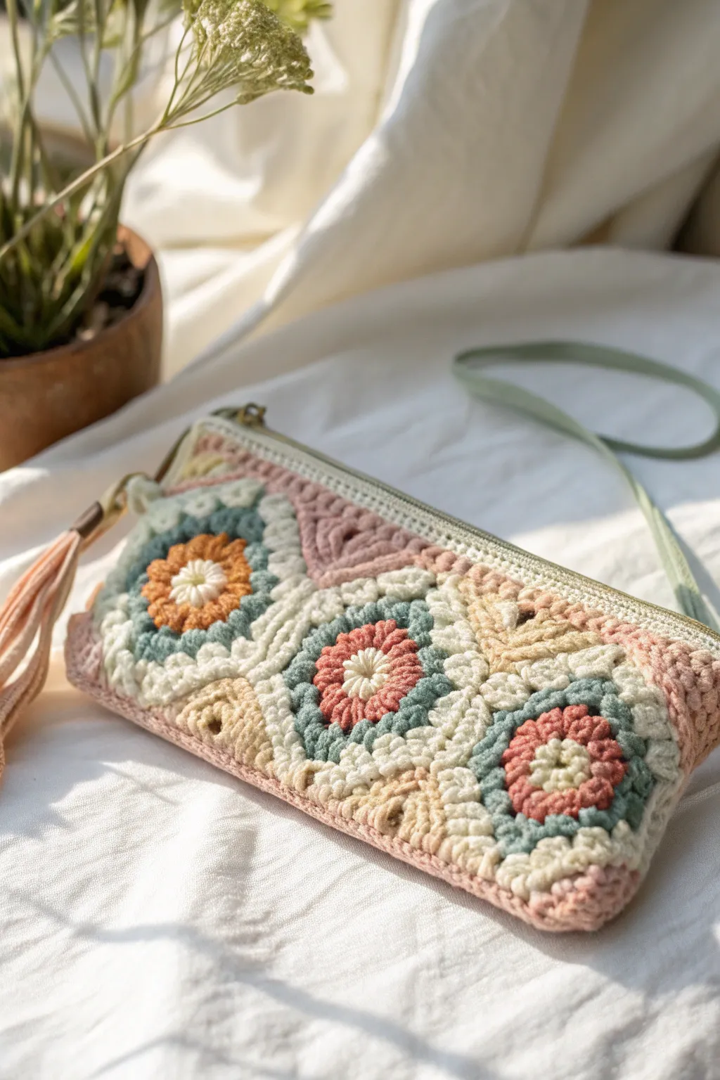 For cosmetics or coins, these crochet pouches are both practical and fashionable. They’re my preference for arranging small items when I’m on the move.