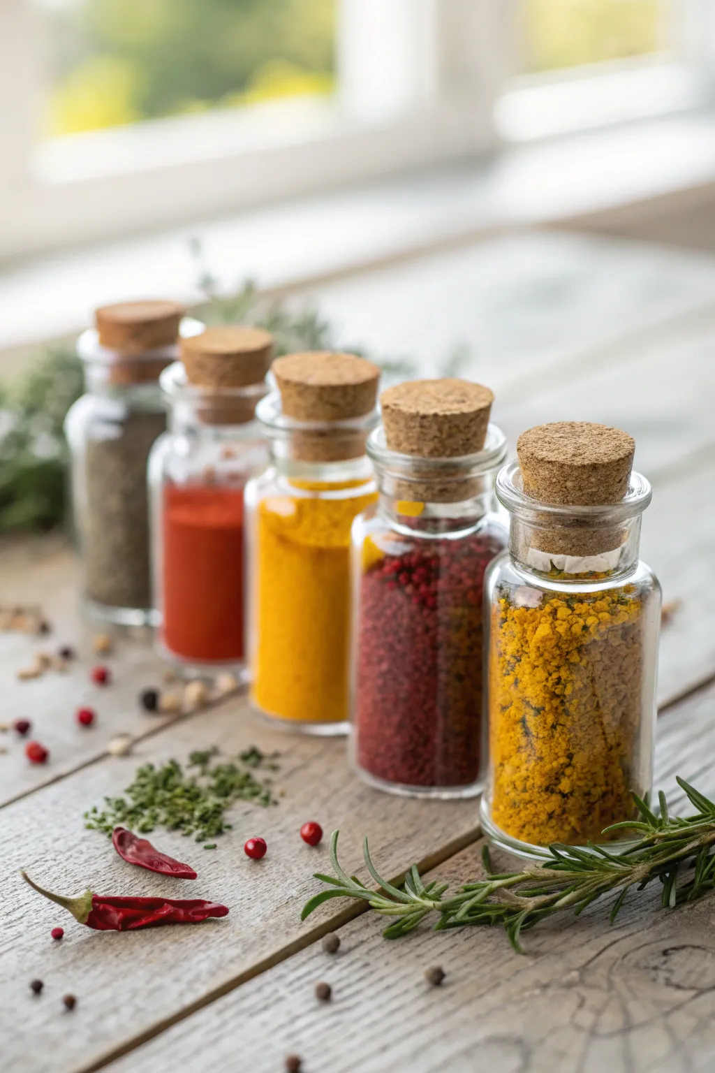 Populate diminutive vessels with unique spice fusions that your friend can employ in their culinary endeavors. These minute spice vessels are suited for imparting a dash of flavor and thoughtfulness.