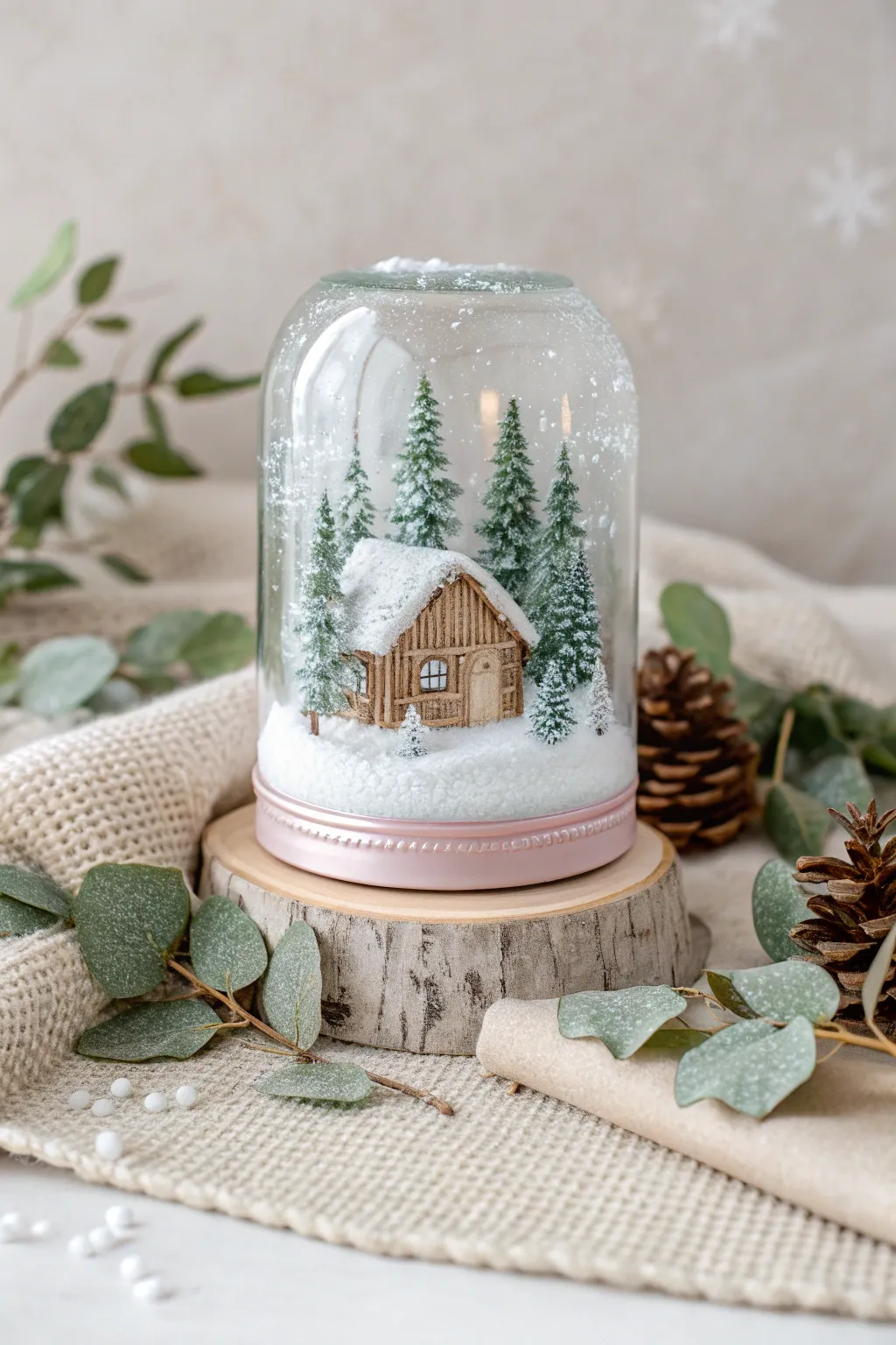 A preserve jar presents a timeless option for designing an inviting snowglobe. Simply incorporate a petite evergreen or frosty figure, a sprinkle of shimmer, and water to fashion an enduring keepsake.